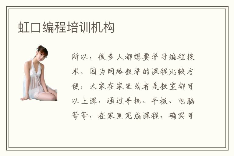 所以,很多人都想要学习编程技术。因为网络教学的课程比较方便,大家在家里或者是教室都可以上课,通过手机、平板、电脑等等,在家里完成课程,确实可以节约很多时间,保障不错的学习状态,高效率完成计算机编程内容。虹口编程培训班哪个好要看很多的因素,同学可以找到一些师资力量雄厚的机构。有一些学校更加注重理论,还有些学校会把理论和应用充分结合,使大家的综合能力得到显著提升。比如刚开始的时候,大家的技术水平不够扎实,而老师可以安排基础性的游戏编程训练项目,如果能力比较强,就可以安排高难度的训练课程。虹口编程培训品牌有哪些,大多数都会有不错的教育水平和竞争优势,也能形成良好的编程培训品牌口碑,如果学校的口碑不好或是技术结构不太完善,也没有良好的编程培训品牌氛围,那么可能这些机构并不适合大家的考虑。