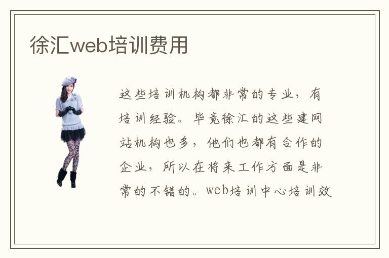 这些培训机构都非常的专业,有培训经验。毕竟徐汇的这些建网站机构也多,他们也都有合作的企业,所以在将来工作方面是非常的不错的。web培训中心培训效果值得期待。web前端设计培训公司一般都会有高的水准,也会提供很多应用的课程,让学生不仅得到的是理论的提升,还有更多应用实践和运用思维的改善。web前端学校收费贵吗,不同学校的教学要求,培训周期,辅导课程等都不一样,同学们的学费也有差异。更好的提升自己,让自己变得更优秀,找工作方面才会有更多的选择。为了取得尽快的突破,学生可以考虑web前端徐汇的培训学校,这些学校的教学速度很快,培训难度也比较小,学生会有很大的进展。所以,在徐汇web开发培训不失为一个良策。