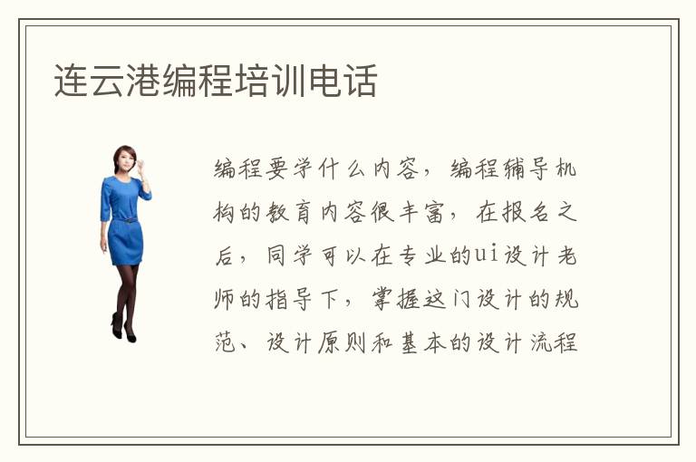 编程要学什么内容,编程辅导机构的教育内容很丰富,在报名之后,同学可以在专业的ui设计老师的指导下,掌握这门设计的规范、设计原则和基本的设计流程。编程培训班怎么样找,应该着重关注师资力量,教学口碑,课程类型等等因素。连云港编程培训班可以根据同学的兴趣以及学习的方向、职业规划等等,安排不一样的项目,帮助大家理解计算机编程的原理、应用的技巧、专业的知识框架等内容,从而成为更加优秀的软件开发专员或者程序员。还有部分同学不太善于总结,也不愿意学习前沿知识,学习的进程也容易受到影响。很多学生对程序设计都非常陌生,但如果想要在计算机专业领域拥有较大的机会,就需要学习这些基础的课程,争取强化个人的应用能力。北上广深的编程技术人员的薪资可以达到13000~18000。