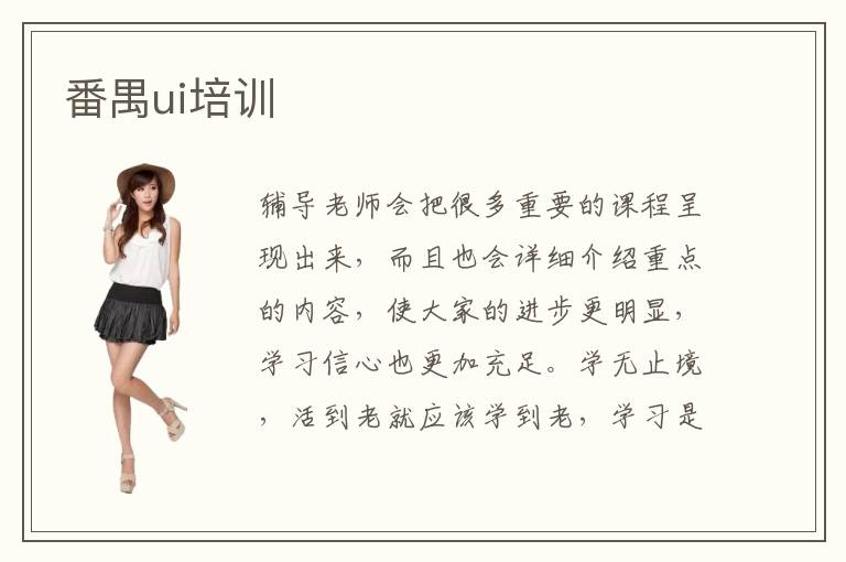 辅导老师会把很多重要的课程呈现出来,而且也会详细介绍重点的内容,使大家的进步更明显,学习信心也更加充足。学无止境,活到老就应该学到老,学习是一个不断积累不断升华的过程,不会突然产生量变而是会在日积月累的过程中逐步有质的飞跃。UI设计专业中的交互设计轻易学会吗。UI培训机构的办学理念因此就业为导向,让学生加强自我的就业合作力和专业常识水平。ui主要课程有哪些,主要有软件设计和网页开发。在如今这个计算机就业市场很可观的社会,UI设计专业是对口又高端的技术型人才,因此学习UI设计专业还是很有必要的。中国十大ui培训机构优弱点。番禺区ui培训班里面的教师非常的专业。番禺UI培训重视实践吗,基本上每个培训机构都会特别重视实践,因为大多数培训机构都意识到,如果学生没有实践的能力,只学习理论知识,那么在传统的大学或者是大专院校都可以掌握。
