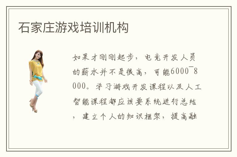 如果才刚刚起步,电竞开发人员的薪水并不是很高,可能6000~8000。学习游戏开发课程以及人工智能课程都应该要系统进行总结,建立个人的知识框架,提高融会贯通和应用的能力。有些电竞辅导班的口碑很不错,经验丰富,能力也非常强,同学们往往十分满意。不过在学习的时候,不仅要学习基础性的项目,还要适当挑战一下个人的能力,逐步接触更多有难度的知识。如果觉得个人能力不过关,可考虑石家庄游戏开发培训。如果技术人员想要在游戏开发领域拥有比较好的发挥,成为更高级的人才,可以结合石家庄游戏开发培训课程,掌握游戏开发的设计流程以及各种技术的要求,从而发挥个人的实力。游戏设计其实要考虑许多角度,包括游戏概念,游戏交互,动画与特效,整体设计风格和画面效果,游戏用户体验等。