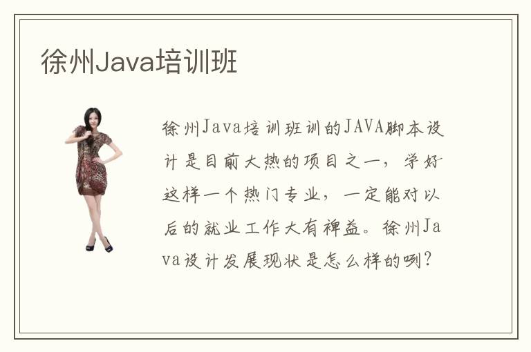徐州Java培训班训的JAVA脚本设计是目前大热的项目之一,学好这样一个热门专业,一定能对以后的就业工作大有裨益。徐州Java设计发展现状是怎么样的咧?徐州Java设计培训一直是比较吃香的,热度依旧,没有什么削减的迹象。徐州Java设计师前途如何呢?徐州Java工作者分为普通的和高端的,分类不同自然专业水平不同,自然薪资水平也就不一样了。