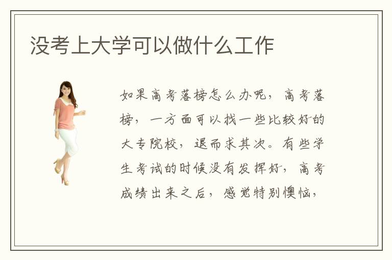 如果高考落榜怎么办呢,高考落榜,一方面可以找一些比较好的大专院校,退而求其次。有些学生考试的时候没有发挥好,高考成绩出来之后,感觉特别懊恼,300分的成绩确实是不太理想。跟着国度关于各行各业专业技术型人材的需求量逐步加强,也就不竭挑高了高考的难度,是以愈来愈多的同窗会在高考进程中落榜。女生们比较有锁的还是他们的审美,此刻有良多比较存在成长前景的美术设计专业,高考落榜的女生可以选择这些专业停止学习。许多高中毕业生在高考时只有200分到400分,确实很难找到满意的本科院校,可以看看分数线比较低的专职院校,从而进行有效的筛选,珍惜自己考试的分数,以免遭到劣质的学校。高考是独木桥,只有少部分学生的胜利,因此大多数考生可能要面临着落榜的窘境,有一些学生可能长时间都没办法排除这些压力,甚至认为自己的人生就是特别失败。
