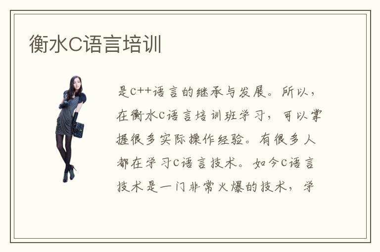 是c++语言的继承与发展。所以,在衡水c语言培训班学习,可以掌握很多实际操作经验。有很多人都在学习c语言技术。如今c语言技术是一门非常火爆的技术,学会这门技术对自己工作方面很有帮助。若是老是足足近况,不肯意学习新的常识,前进空间会越变越小。很多在衡水c语言培训班里面学习过的学员们都说,衡水c语言培训班非常的好。随着互联网领域的蓬勃发展,越来越多的人想要在其中分一杯羹,越来越多的互联网企业如雨后春笋,其中有大有小,质量与实力也参差不齐。这些衡水c语言培训机构虽然多但都是专业的培训机构,光教学设备就有好几千套。衡水c语言培训机构在培训人才方面非常的有经验。C语言培训班可以带领大家学习很多编程语法知识,针对不同计算机编程语言的重要特点以及使用的方法来进行训练,大大缓解压力,调整大家的学习节奏,也能够增强理解能力和应用能力。