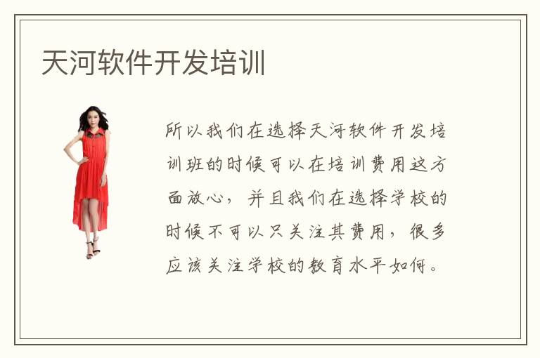 所以我们在选择天河软件开发培训班的时候可以在培训费用这方面放心,并且我们在选择学校的时候不可以只关注其费用,很多应该关注学校的教育水平如何。软件的运行是有很多重要的知识点,包括软件开发、软件代码编程、软件设计等等,有一些人可能忽略到了软件测试的重要性,在设计完软件之后却不进行软件测试,有很多明显的漏洞都弥补不过来,当然就会在运行的过程中出现很多风险。不过因为整个行业的竞争环境越来越激烈,大家要对个人有更高的标准。而学习程序员方面的专业知识,就得到专业的培训班去学习。天河软件学校机构,这都是一些非常专业的培训机构。软件开发培训大概难度一般都会得到控制,因为软件开发培训老师会特别关注学生的能力以及适应的情况,如果学生觉得有难度,老师会适当降低难度,而且也利用有用的学习经验,让学生可以掌握技巧,降低学习的压力。