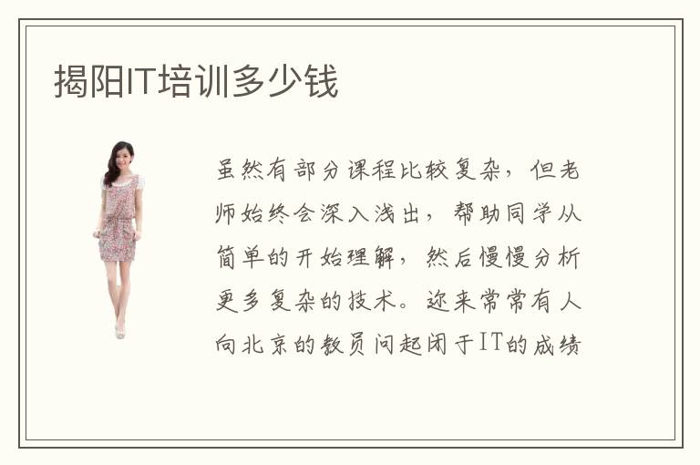 虽然有部分课程比较复杂,但老师始终会深入浅出,帮助同学从简单的开始理解,然后慢慢分析更多复杂的技术。迩来常常有人向北京的教员问起闭于IT的成绩,比方IT是什么。刚刚学习时,很难通过自学的方法来掌握,不妨由老师带领自己学习。it小班课程的作用就是帮助同学打下坚实基础,分享很多学习经验,解答专业的疑惑,同学有不懂的问题,都可以请教这些专业指导班的老师。这样才能掌握到更多的相关计算机方面的,技术知识。当然这包括许多的揭阳it培训学校。但是小组教学往往就能一对一来辅导,凸显出IT专业应用的成绩,改善学生的学习技巧技能。首先,应该看培训机构的资历自己办学年龄,一般选择资历比较老的,因为这种学校一般比较有经验。
