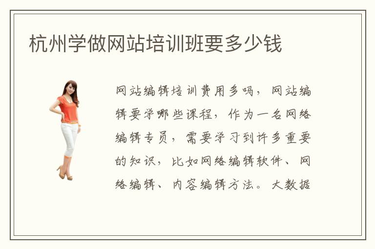 网站编辑培训费用多吗,网站编辑要学哪些课程,作为一名网络编辑专员,需要学习到许多重要的知识,比如网络编辑软件、网络编辑、内容编辑方法。大数据学习网站还是挺多的。网站推广培训要多久,可能培训两个月到三个月即可,其实主要的作用在于帮助学生调整课程的进度,进行综合的整理和归纳,让大家的学习节奏得到快速上升,效率大大提升。那数据分析学习网站,综合很多的,关于大数据分析方面的,知识内容。杭州学做网站培训机构,有着非常多的,专业性的教师,所以学员在这里学到的知识也都是专业的知识。它的存在意义就是为了帮助更多的人先了解大数据开发技术。网站工程师有什么课程,网络工程师的课程比较多,比如网络开发与设计、网络制作、网络功能培训,大家要结合自己的实践应用能力来进行训练。