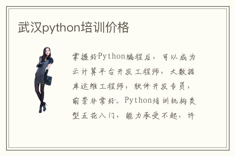 掌握好Python编程后,可以成为云计算平台开发工程师,大数据库运维工程师,软件开发专员,前景非常好。Python培训机构类型五花八门,能力承受不起,许多学生在考虑这些Python机构的时候会比较担心,找到劣质的培训机构那么可能就发挥不出成果,那么大家可以重点关注武汉Python培训机构排行榜,了解各种Python培训的教育指标以及教学任务、培训能力、基本的水准、师资力量等等。另外,在学习python编程课程时要有独立思考,不要指原来的培训班。python培训机构排名非常重要,因为在挑选辅导班时,需要综合对比,了解不同学校的优劣之处,如果排名比较靠后,没有全面的python课程,学习效果可能受到影响。