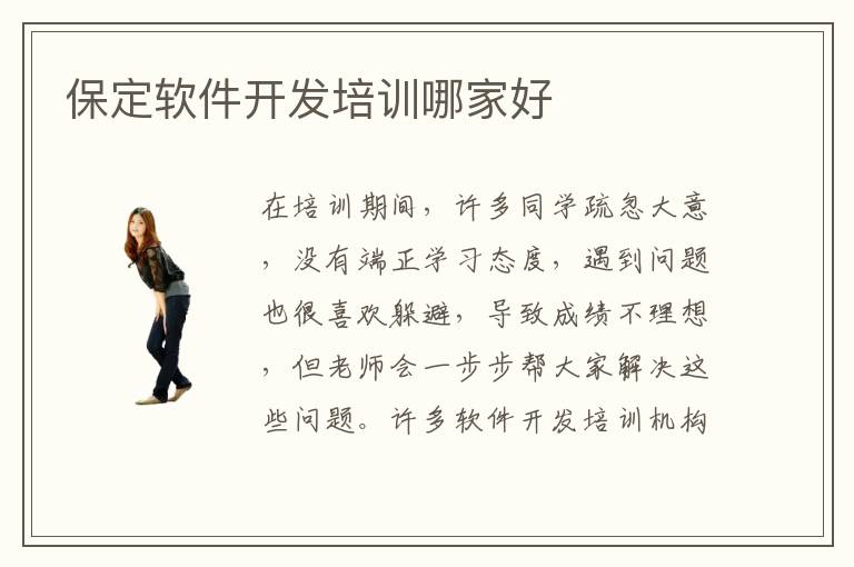 在培训期间,许多同学疏忽大意,没有端正学习态度,遇到问题也很喜欢躲避,导致成绩不理想,但老师会一步步帮大家解决这些问题。许多软件开发培训机构的学员都想要报名软件测试的专业,但是又很担心自己的软件,才是一直都得不到好的成绩,因此不知道怎么样考虑这些辅导机构。当然不少同学是上班族时间特别少,平时只有周末才能上课。对良多基础比较亏弱的计算机专业的学生来讲,想要学习软件专业的课程,常常会花很长的时间。保定市是我国经济成长的重要都会,专一于国内各类计算机专业人材的培育,是一个新兴计算机专业人材的培训基地。同学也可以针对自己的感兴趣的领域以及个人的职业发展规划,挑选合适的课程,优化个人竞争优势,竞争中拥有很多表现机会,得到更长远的进步,实现预期的目标。