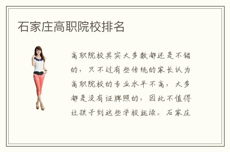 高职院校其实大多数都还是不错的,只不过有些传统的家长认为高职院校的专业水平不高,大多都是没有证牌照的,因此不值得让孩子到这些学校就读。石家庄高职院校优点主要在于小班教学,很多学校已经特别重视教育资源的配备,也在不断改善教学的环境,希望让更多学生拥有实习的机会,提升专业的技能。对待学生们也非常的负责任。石家庄电脑技术培训学校里分为多个条理,合适于分歧的学生分歧的讲授培训形式,出色绝伦地显现出纷歧样的学习培训结果。那末,你关于关肥高职院校领会吗。石家庄省是一个以优异讲授品质出名的省分,石家庄省是讲授品质也是其余良多省分寻求的眼标。高职院校确实是五花八门,如果没有找到合适自己的,那么就要了解不同学校的优点和缺点。