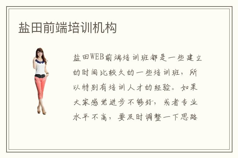 盐田WEB前端培训班都是一些建立的时间比较久的一些培训班,所以特别有培训人才的经验。如果大家感觉进步不够好,或者专业水平不高,要及时调整一下思路,看看有没有一些相关的补课方案,既能够提高效率,又能保障不错的质量。不仅是互联网企业,基本上所有的企业都开始通过移动端来增加知名度,吸引客户资源。在盐田WEB前端培训机构办的不错的还是有几家的,例如北大青鸟盐田校区,中软卓越等,因此想要学习相关知识的人,可以选择参加培训班,自学这门专业相对吃力些,参加培训机构是一个高效学习的途径。前端辅导班的课程也有很好的帮助,虽然刚开始起步的阶段,同学会感觉到内容有点多,复杂程度太高。在这个课程中,你能看到盐田web前端培训内容的知识框架,以及学生的作息安排。