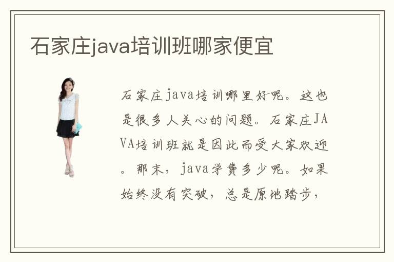 石家庄java培训java培训哪里好呢。这也是很多人关心的问题。石家庄JAVA培训班就是因此而受大家欢迎。那末,java学费多少呢。如果始终没有突破,总是原地踏步,可能会遇到发展障碍。对良多基础比较亏弱的计算机专业同窗来讲,想把握编程语言的常识,需要多花时间,由于有的课程比较庞杂,利用常识太多,学生在古板的院校阶段可能只要实际方面的学习,没有真实的利用练习,致使进度出格缓,成绩很不睬想。很多同学在学习java编程的时候,都不太了解语法的知识,语言规范以及编程思想,更不知道怎么样与其他编程语言区分,导致使用的过程非常茫然。想要学习java基本有以下两条路径,一种是通过阅读相关书籍,网上寻找相关技能视频来自学,还有一种就是加入java专业培训班,或者是学习计算机java相关专业。