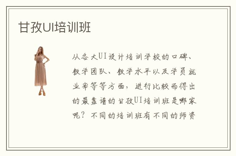 从各大UI设计培训学校的口碑、教学团队、教学水平以及学员就业率等等方面,进行比较而得出的最靠谱的甘孜UI培训班是哪家呢?不同的培训班有不同的师资团队,也会有不同的教学方式,而每位学员的专业接受能力又不一样,自然就会造成不同的学习效果。因此,学员们在同一所UI培训班上课学习,在学习同一段时间内,不同的人精通UI设计专业的程度也不会一样。