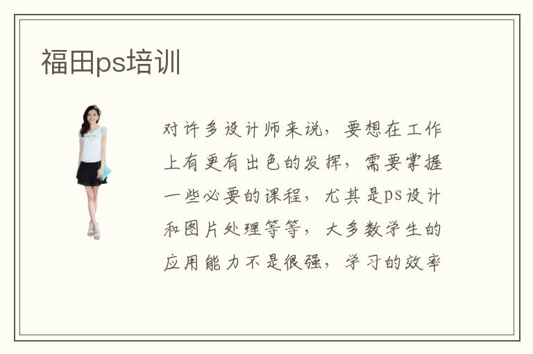 对许多设计师来说,要想在工作上有更有出色的发挥,需要掌握一些必要的课程,尤其是ps设计和图片处理等等,大多数学生的应用能力不是很强,学习的效率很低,很担心被其他同学超越。ps寒假辅导班的优势主要在于培养同学的专业应用能力,增强同学的应用水准,达到更好的学习标准。部分学生感觉这些课程有点难,要求也逐渐增多,所以会报名福田影楼ps培训班,希望在专业老师的训练之后,得到很大的进展。摄影ps后期设计师工作难吗,摄影ps后期设计师的工作难度不算特别大,因为技术水平比较高的时候,大家就能完成多项任务,也能达到工作的标准。学校的辅导思路十分清晰,教学目标明确,内容也非常多样,所以进步会非常好。如果大家想快速掌握ps应用技术,可考虑报名福田计算机ps培训。