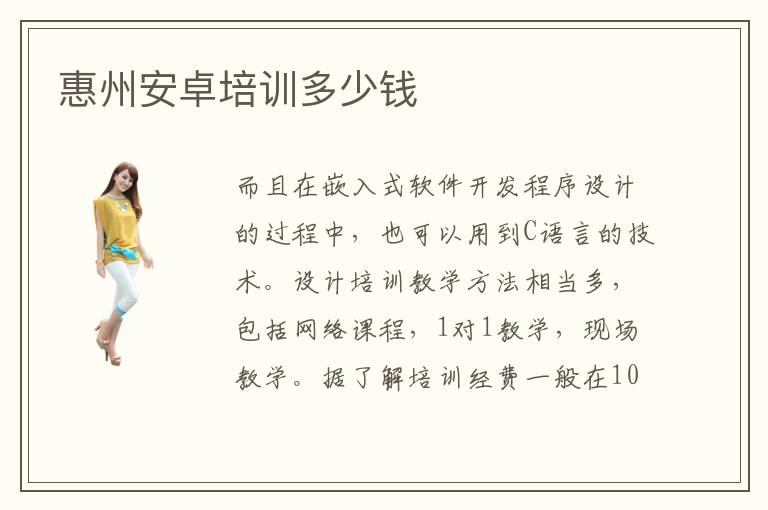 而且在嵌入式软件开发程序设计的过程中,也可以用到C语言的技术。设计培训教学方法相当多,包括网络课程,1对1教学,现场教学。据了解培训经费一般在10000-15000之间,培训周期一般是3-5个月。编程有哪些教程,。编程辅导课程难吗,要看同学们报名的编程类型,有一些入门级的编程,比如Java编程,Python编程,难度并不算特别高。若成绩不好,可以选择高效率的惠州编程培训班,老师往往结合同学的问题,安排不同的课程,减少学生的压力。亚嵌嵌入式系统培训课程非常重要,很多同学在刚刚起步的阶段能力都不是很强,专业水平不够突出,优势也不够明显,难免会遇到很多障碍,而辅导机构可以加深同学对知识的理解,懂得更多有用的技术。