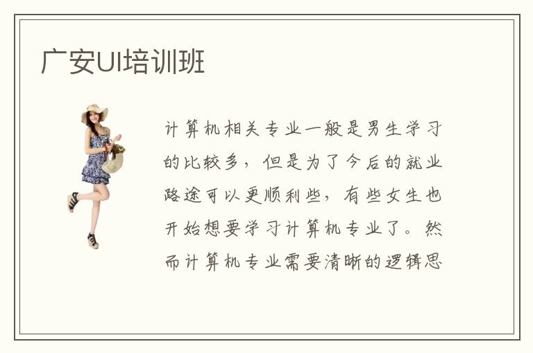 计算机相关专业一般是男生学习的比较多,但是为了今后的就业路途可以更顺利些,有些女生也开始想要学习计算机专业了。然而计算机专业需要清晰的逻辑思维能力以及冷静的分析头脑,对于。一般女生而言学习起来还是比较具有难度的。而UI设计作为计算机专业中最适合女生学习的,在国内目前也具有广泛的发展前景。那么,广安UI培训班怎么样呢?适不适合零基础的女生学习呢?