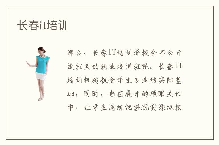 那么,长春IT培训学校会不会开设相关的就业培训班呢。长春IT培训机构教会学生专业的实际基础,同时,也在展开的项眼关作中,让学生谙练把握现实操纵技巧。长春电脑教育品质是有包管的,由于长春计算机培训班聘请的教员讲授水准都是比较高的。长春IT培训机构由于近几年不断发展的计算机行业而得到了飞速地发展,现在的投资者不但注重学校的教育水准,更注重口碑评价和学校的专业项目研究,这样一来,国内的计算机IT培训机构就在教学质量上得到了一个崭新的突破,开始追求教学成果。计算机练习学校长春分校好欠好。为了在最短的时间培育出更多优异的专业计算机技术人材,各地都开设了良多大巨细小的专业计算机IT培训学校,那末长春北大青鸟北大青鸟专业IT培训学校的讲授品质怎么样呢。