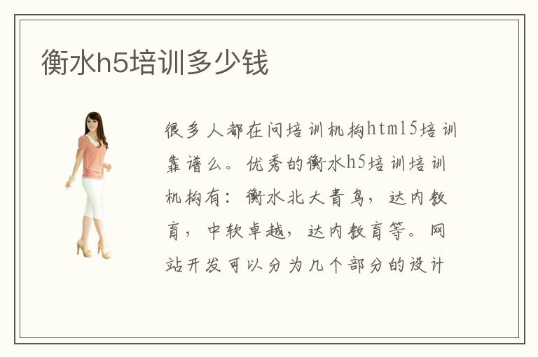 很多人都在问培训机构html5培训靠谱么。优秀的衡水h5培训培训机构有:衡水北大青鸟,达内教育,中软卓越,达内教育等。网站开发可以分为几个部分的设计或者是开发,主要就是两大部分的开发,分为html5前端和后台开发。所以学习html5前端技术还是特别有必要去衡水的那些html5前端培训机构学习。俺在衡水h5培训技术是非常不错的。当下网站开发就业前景如何呢。html5培训班为什么人气高,首先培训班有良好的教学思维,提供大量的补习课程,将多年的解题经验和学习思路呈现给学生。怎样才能学习html5呢。在培养专业教学和就业指导上都能很好的帮助在校学员。很多学习软件技术的人都选择到衡水html5培训机构学习软件技术。