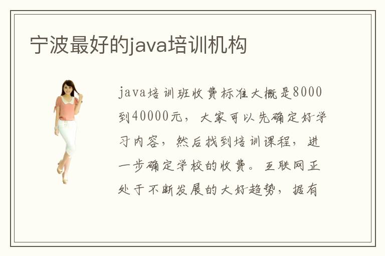 java培训班收费标准大概是8000到40000元,大家可以先确定好学习内容,然后找到培训课程,进一步确定学校的收费。互联网正处于不断发展的大好趋势,据有关数据显示,未来几年国内的移动互联网行业更将步入一个新时代。大家都知道,学习一门技术,尤其是互联网行业的相关技术,最快捷、最有效的途径,就是进入专业的培训机构进行学习。java编程眼前在编程设计这一方面利用最普遍的语言之一,java是一种面向对象的编程语言,它的功效壮大而且具有最简洁的编程算法,可以说是此刻大大都编程技术职员所应用的手段。宁波位于我国的宁波省,是个风景怡人而又经济发达的城市,随着移动互联网的发展形势大好,已经成立了许多家大大小小的培训机构。