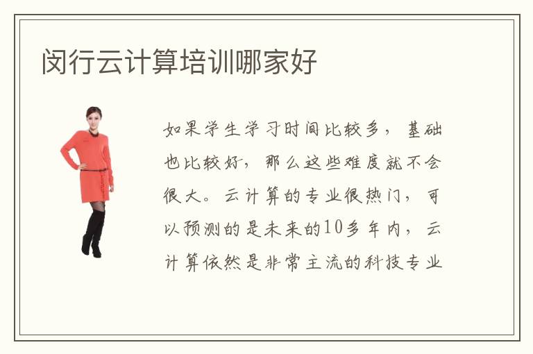 如果学生学习时间比较多,基础也比较好,那么这些难度就不会很大。云计算的专业很热门,可以预测的是未来的10多年内,云计算依然是非常主流的科技专业,所以云计算专业的学生如果可以把握良好的技术,那么以后往往可以减少失业的风险。云计算培训机构速度快不快,大多数云计算培训机构的培训速度还是可以得到保障的,也一直都在为学生提供全面的辅导计划。当然在报班前,还是要多分析闵行云计算培训价格,既能保证学习效果,又能节省学习费用。不同学校的教育水准和学习优势都不太一样,部分学校资源丰富,专业能力强,培训质量也相对较高,同学很快就可以掌握课程。若想快速学习,需要请教一些经验较为丰富的指导老师,把问题解决掉。虽说有些学员是零基础的水平,但经过老师一段时间的手把手教学后,也可以轻松搞定云计算的高难度课程,从而在云计算专业领域中拥有好的成绩。