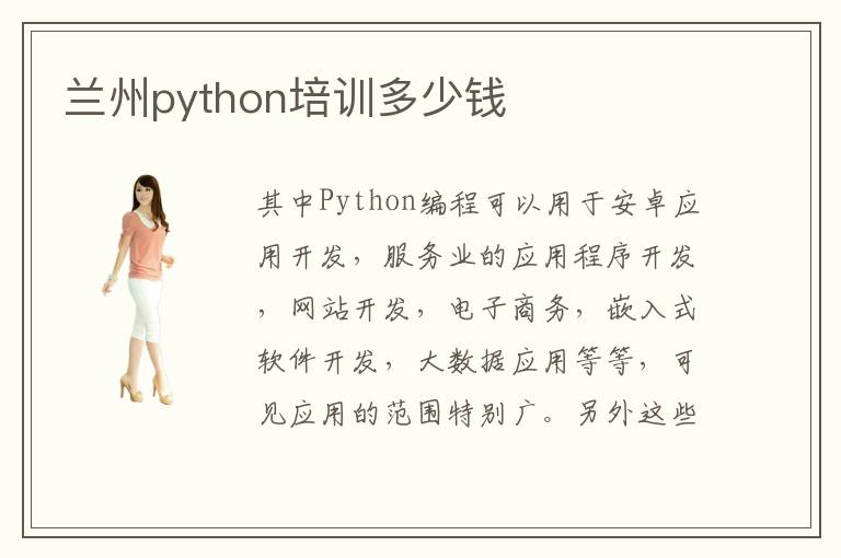 其中Python编程可以用于安卓应用开发,服务业的应用程序开发,网站开发,电子商务,嵌入式软件开发,大数据应用等等,可见应用的范围特别广。另外这些小班的课程有更强的针对性,指导效率更高,进步更明显,可以让大家充满信心,不用担心学习效率不高或成绩不好的问题。python编程语言有很多重要的课程,有一些同学理解不太透彻,应用的能力很有限,工作中很容易处于劣势状态。兰州python培训中,求学者也不难找到好的培训机构,那么兰州python培训机构有哪些呢。兰州python培训机构找工作好不好,大多数学校都是特别重视动手能力,这也是企业的需求。兰州python培训怎么样,往往都有很高的效率,氛围也很不错,配套设施完善,比较值得同学关注。