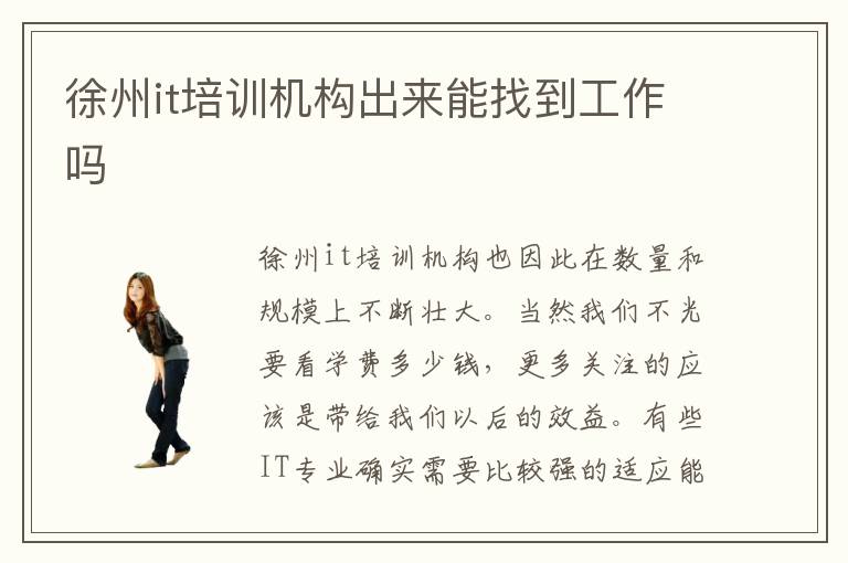 徐州it培训机构也因此在数量和规模上不断壮大。当然我们不光要看学费多少钱,更多关注的应该是带给我们以后的效益。有些IT专业确实需要比较强的适应能力才能够把握,因为这些IT的专业知识一直在变化,每一年都有大量的更新,有些人可能适应不过来,有时候会担心学习进度受到影响,还会影响个人的心理状态和情绪,导致不愿意学习这些专业的内容。这些专业都有大量的新技术,还有许多复杂的课程,同学不妨从入门级知识开始,一步一步提升专业的能力,解决实践应用的难点,改善学习的效果。某工程师曾如许说道:IT业是此刻一切职业中最具挑衅性的职业之一,工作中不但需要简单的思虑,还需要实现各类分歧的使命。it培训大概多少费用,要看一下到底选择的是网络课程还是it1对1课程,网络课程每一个月的费用大概要3500~7000,但如果是1对1课程,可能要5000~15000。