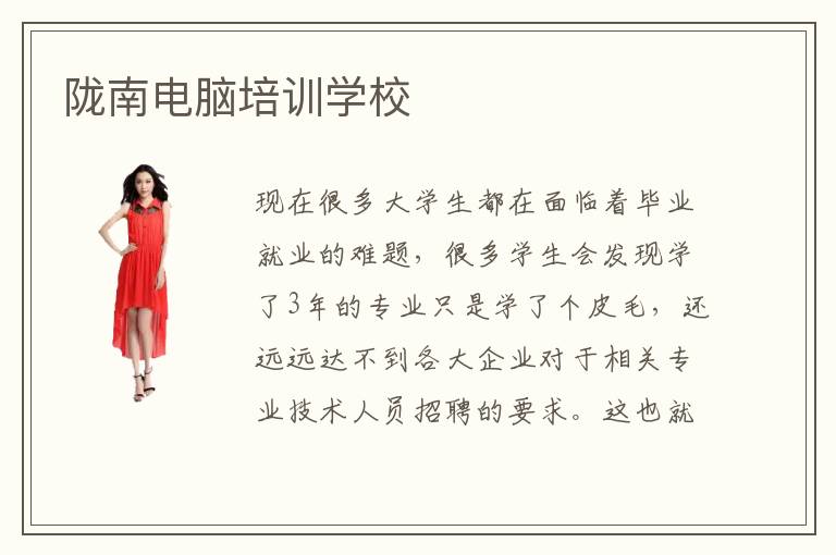 现在很多大学生都在面临着毕业就业的难题,很多学生会发现学了3年的专业只是学了个皮毛,还远远达不到各大企业对于相关专业技术人员招聘的要求。这也就是学校与专业技术培训学校在教学质量、课程安排以及实践经验等方面的差别。要想学好计算机相关专业技术,仅仅在学校的学习是不够的,去陇南电脑培训学校学习才是学好这门专业最快最好的途径。
