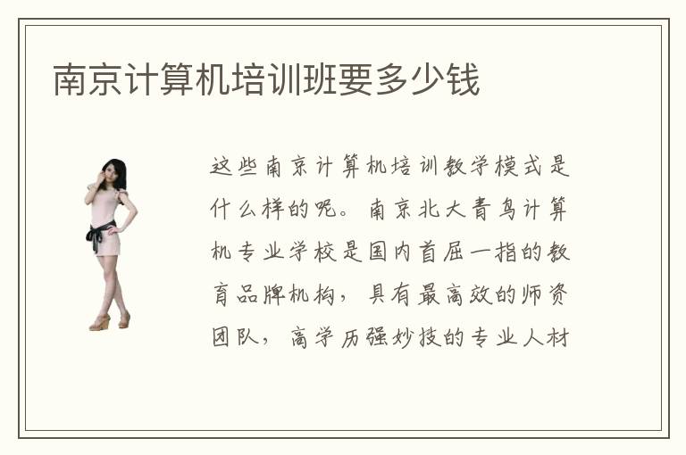 这些南京计算机培训教学模式是什么样的呢。南京北大青鸟计算机专业学校是国内首屈一指的教育品牌机构,具有最高效的师资团队,高学历强妙技的专业人材倾力为学生们上好每节课,细化讲授常识点,而且采取一对一的讲授形式,使得每位学生都可以的在南京北大青鸟计算机专业学校遭到最高品质的学习。南京峡计算机培训学校的建立便是其表示之一。南京电脑培训班价格多少。南京电脑学校培训西席把学生的就业问题当作本身的义务,尽力展开实践讲授,为学生的将来成长挑供技术上的撑持和帮助。想要知道南京计算机培训机构的培训效果怎么样。现在大多数人都在学习计算机技术,毕竟计算机行业相关的工作待遇都很不错,而计算机行业相关的专业人才又非常的少所以这些人都选择学习计算机技术。