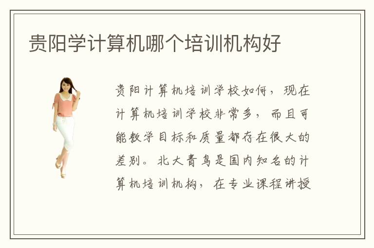 贵阳计算机培训学校如何,现在计算机培训学校非常多,而且可能教学目标和质量都存在很大的差别。北大青鸟是国内知名的计算机培训机构,在专业课程讲授方面还是很有经历的,而贵阳北大青鸟计算机培训学校作为北大青鸟的贵阳分校区,天然也是存在很专业的讲授培训实力。就算不大富大贵也不会太难过,如果现在的你正在迷茫不知怎么赚钱也不知道选什么专业好,就听下我的建议吧,学习下计算机技术吧,去贵阳计算机培训看看了解一下,无论你现在的身份是学生还是上班族都可以去试试,当你有了一门技术的时候你会发现生活完全不一样了,工资蹭蹭的涨心情也大好起来,老板再也不会给你看脸色因为他需要你更需要你的技术,贵阳计算机培训很有特色那里的教学质量很好比起其它学校要好的太多,贵阳计算机培训是所人才辈出的学校真的会改变你改变你的生活。