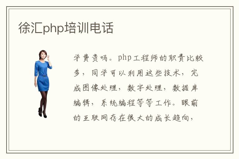 学费贵吗。php工程师的职责比较多,同学可以利用这些技术,完成图像处理,数字处理,数据库编辑,系统编程等等工作。眼前的互联网存在很大的成长趋向,php作为很是简洁的一种Web开发语言,不但落低了企业投入本钱,还挑高了代码运转速率,这使得php软件工程师成为当下一个很热门的职业之一。以后,就都会得到体现,有很多帮助。全程分模块学习,集中并且高效。php编程对计算机专业的同学来说,有很重要的价值,可以应用到很多专业领域,包括游戏设计和网络工程、软件技术开发、软件应用等等项目。在中级的部分,可以学习一些相关的开发工具,数据采集工具,网络数据抓包。随着学习php技术的人越来越多,徐汇php培训机构也都挤满了人。