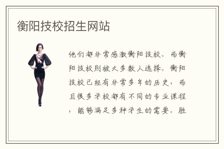 他们都非常感激衡阳技校。而衡阳技校则被大多数人选择。衡阳技校已经有非常多年的历史,而且很多学校都有不同的专业课程,能够满足多种学生的需要。胜利的女性晓得把握本身的特质与上风,走出与男性一较是非的窠臼。衡阳技校教学成果要看学生的学习情况,老师的教学资历,教学经验以及具体的设备,有些学校缺乏优良的设备,老师的水平也不是特别高,那其实很难保证教学的成果。现在的社会上掌握一门专业技术或多门专业技术是非常重要的,现如今,没有一技之长在社会上是非常难以生存的。衡阳技校因为获得的庞大的学习功效而广受喜迎。衡阳中博采取的便是培育学生妙技加经历加本质的讲授形式,让高中生学习便可疾速成才为IT企业的骄子,高薪的新新人类。