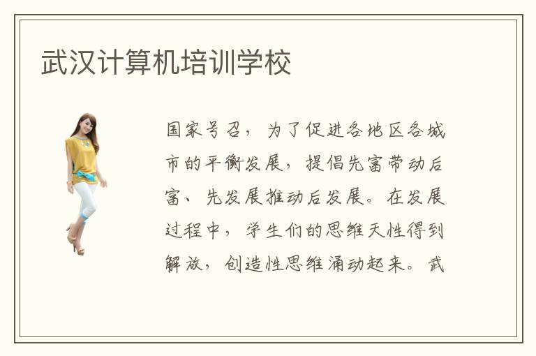 国家号召,为了促进各地区各城市的平衡发展,提倡先富带动后富、先发展推动后发展。在发展过程中,学生们的思维天性得到解放,创造性思维涌动起来。武汉计算机培训计算机培训学校在训练学生的计算机知识上,带动国家经济稳步向前。武汉计算机培训班教育理念是保障学生就业,增加就业机会,拓宽就业领域。武汉电脑培训学校学费问题如何推进?