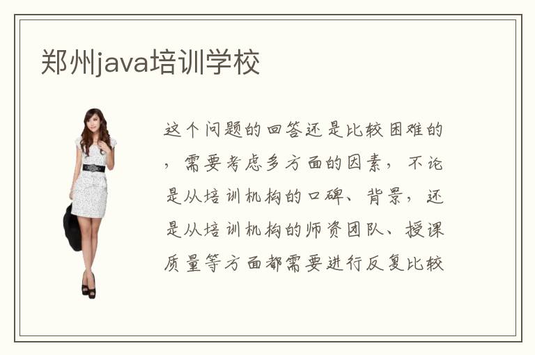 这个问题的回答还是比较困难的,需要考虑多方面的因素,不论是从培训机构的口碑、背景,还是从培训机构的师资团队、授课质量等方面都需要进行反复比较,当然培训机构的就业保障也是很重要的一个问题,选择需要谨慎。java培训班可靠吗,编程辅导班的教学优势突出,专业能力强,培训方法也非常多。是以编程设计师需要具备高度会合的精力,以及高明的专业技术,那末怎样能力学好编程呢。计算机编程知识有点难内容,很多学生要投入较长时间去理解和熟练,尝试一些基本应用方法,从而取得好成绩。郑州位于我国的广东省,是个交通便利的人口聚集城市,也是国内的经济开发特区。郑州JAVA就业率是非常高的,因为现在就是关键的科技发展阶段,也是属于计算机科技行业的春天,如果专业人士连这些简单的设计语言或者是技术都没有办法掌握,那么很容易陷入困境,被人超越,未来优势会变特别不明显。