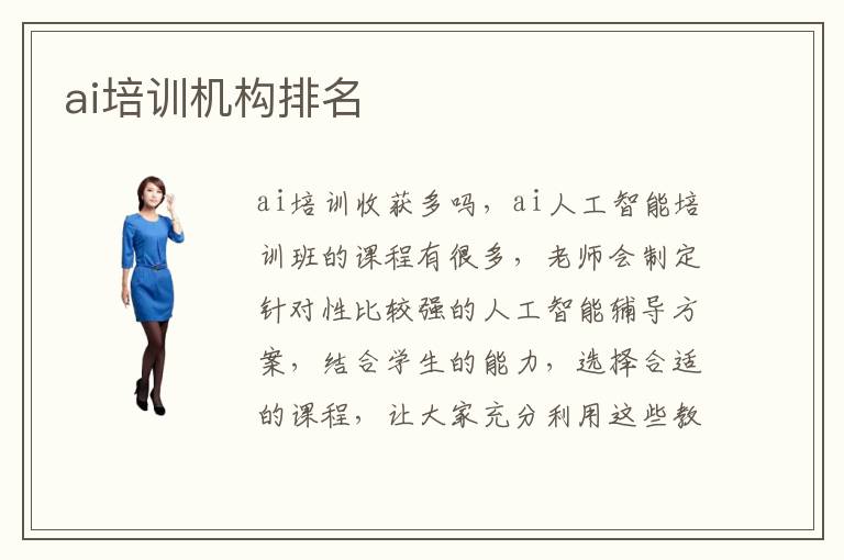 ai培训收获多吗,ai人工智能培训人工智能培训班的课程有很多,老师会制定针对性比较强的人工智能辅导方案,结合学生的能力,选择合适的课程,让大家充分利用这些教学内容,提高技术能力。若想在工作当中有优势,获得更多发展机会,都不妨多关注这部分课程,完成老师的要求,从而得到更多的进步。ai人工智能培训容不容易,ai人工智能培训课程相对容易,可以培养学生独立思考的能力和创造能力,在人工智能专业的快速发展中,拥有更强的竞争优势。但大家可先确定好自己的需求,到底是为了弥补基础,还是为了找到一个更融洽的学习环境。ai训练班老师的能力强不强,多数教学机构的老师都有不错的实力,工作中有完整的培训方案,经验十分丰富。人工智能培训机构的类型有很多,也可以分为多种专业,另外在课程内容方面也有非常专业的体系。