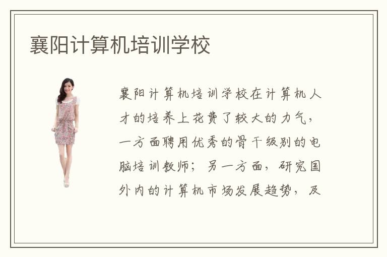 襄阳计算机培训学校在计算机人才的培养上花费了较大的力气,一方面聘用优秀的骨干级别的电脑培训教师;另一方面,研究国外内的计算机市场发展趋势,及时调整教学方向。襄阳电脑培训班培训内容在哪里可以了解?在襄阳计算机培训机构的官网上可以对襄阳计算机培训学校有详细的了解和新的认知。只有,较为全面地掌握了襄阳计算机培训机构中心的相关咨询,才能有把握选择好学校。