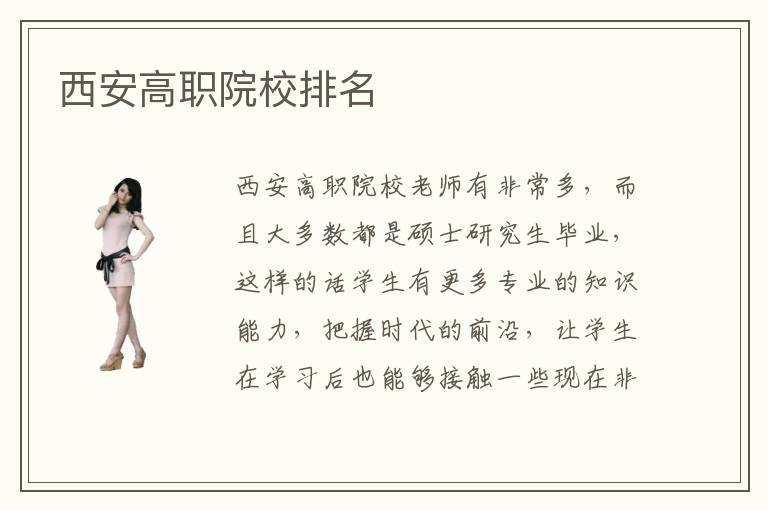 西安高职院校老师有非常多,而且大多数都是硕士研究生毕业,这样的话学生有更多专业的知识能力,把握时代的前沿,让学生在学习后也能够接触一些现在非常热门的话题,不至于和未来的职场生活社会脱轨。成立于1979年初,是省重点职业技术学校。其实现在已经有很多学校培养大量优秀的学生,每一年都会为社会提供充足的资源。西安高职院校基本情况,一般可以包括学校的专业技术,老师的水平以及学校的教学方法等等,要从多个角度来判断,找到适合自己的学校和专业,发挥更好的教学目的成果。西安高职学校里面的老师们,会非常负责任的把专业课,知识教授给学生。可能许多人都对高职这个词语感到陌生和不理解,那么西安高职院校就是一所学习职业技术的院校。