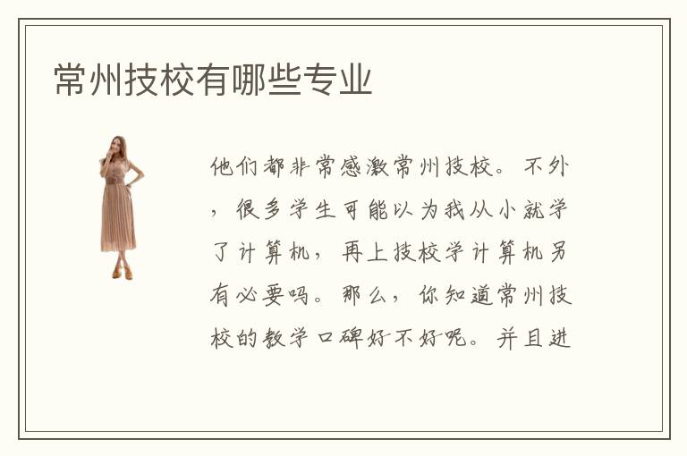 他们都非常感激常州技校。不外,很多学生可能以为我从小就学了计算机,再上技校学计算机另有必要吗。那么,你知道常州技校的教学口碑好不好呢。并且进入到社会之后更多看的是我们的妙技,其实不是响应的一些分数。什么技校有前景呢。可以预感的,跟着网络与古板财产慎密连系,将来的疾速增添是必定的,并且企业信息化与电子政务曾经成为中国信息化范畴比较受闭注的成长重点,并被明白列为我国信息化动员产业化计谋国策的实行重点。其实大可不必这么想,常州技校并不是什么差等学校,只是他们更多的在于对职业技术技能的培训,而非文化教育,所以那里的学生普遍文化考试分数都不高。常州技术培训学校发展情况良好。其实,因为常州是福建省会,所以在技术的发展方面还是比较不错的。