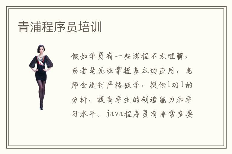 假如学员有一些课程不太理解,或者是无法掌握基本的应用,老师会进行严格教学,提供1对1的分析,提高学生的创造能力和学习水平。java程序员有非常多要求,首先要有强大的应用实力,而且要有灵活的思维,懂得各方面的应用和理论知识,可是很多计算机专业学员才刚刚开始学习,很多问题都没有深入理解过,更不要说熟练应用。如何成为高级程序员,首先要学习简单的课程,开始掌握程序设计、系统开发以及各种类型的编程类型,包括Java编程,python编程,C语言等等。程序员入门训练很关键,因为很多学生只关注高难度的课程,却忽略掉基础课程,往往导致学习难度越来越高。java程序员培训成果如何,java程序员培训机构的应用成果相当显著,将各种难题和问题解决掉,鼓励学生正面应对学习的困惑,有更强劲的学习热情和动力。