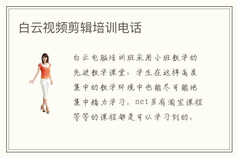 白云电脑培训班采用小班教学的先进教学课堂,学生在这样高度集中的教学环境中也能尽可能地集中精力学习。net另有淘宝课程等等的课程都是可以学习到的。各大企业都开始将眼亮投向国内的计算机市场,可是计算机专业人材的紧缺确切是眼前行业的近况,是以国内各大it教育培训机构开始重视关于计算机职员的培育,只要不竭挑高计算机专业妙技,能力在计算机行业实现更高难度的项眼建造。每年来白云电脑学校学习的人有很多。白云电脑培训学校采用小班教学的培训模式,把学生的就业问题摆放在首位,就目前的情况来看,计算机行业是国内首屈一指的热门行业,且就业热潮也丝毫没有削弱之感。英语好。白云电脑培训按照学生多方位的定位需求,能够精确地领会到学生的学习眼标、就业等候等等,教员再按照学生的专业基础水平,挑出一些扶植性定见,而且将学生的课程安排加以调剂,最大限度地足足学生的课时需求。