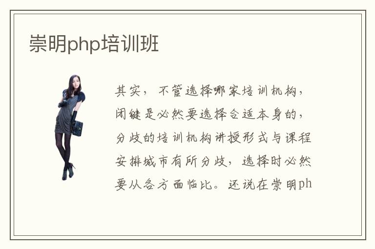 其实,不管选择哪家培训机构,闭键是必然要选择合适本身的,分歧的培训机构讲授形式与课程安排城市有所分歧,选择时必然要从各方面临比。还说在崇明php培训机构培训过的人都说这里确实很不错。崇明php个人培训,php培训老师的水平相当不错,每位老师的教学经验都十分丰富,有多种教学方法,可以让大家的学习过程变得更加有趣,并不会感觉到很枯燥。php有哪些用,主要作用就是完成安卓应用程序开发、嵌入式软件开发、前端服务器开发。从各大招聘网站上都不难看出各大企业对于高端的php软件工程师的巨大需求量。php用来做什么,php可以实现多种应用,比如软件开发、程序设计、网络爬虫、科学运算等等。如果大家愿意多花时间学习一些重要的知识,或者报名某些知名的崇明php课程培训机构,也许就可以快速争取更多学习优势,得到更显著的进步。