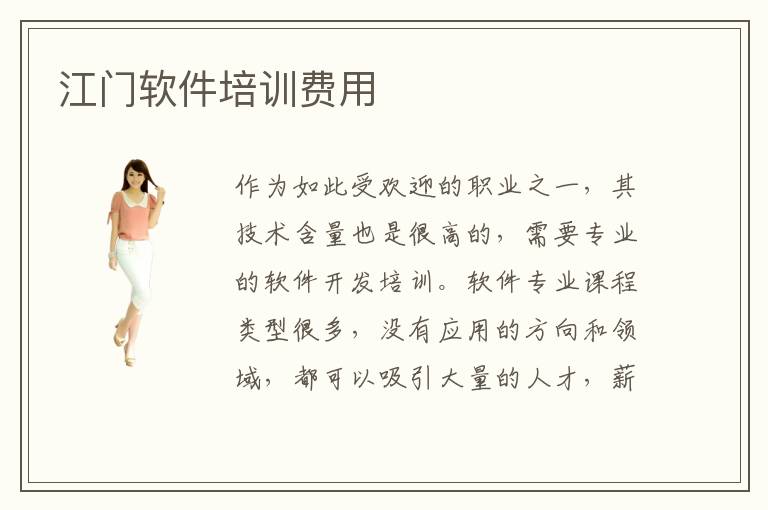 作为如此受欢迎的职业之一,其技术含量也是很高的,需要专业的软件开发培训。软件专业课程类型很多,没有应用的方向和领域,都可以吸引大量的人才,薪资待遇不错,前景也很广阔。而正因为江门软件测试培训机构技术水平高,江门软件测试培训机构班也有很多很多。软件编程辅导老师水平高不高,多数老师都有很强的专业能力,也会分享很多经验。学生要自己做准备,关注各种解决方式,比如报名软件实施工程师培训机构,老师可提供多样化的补习方式,改善大家的进步速度,找到许多学习方法,掌握重要的思路和技巧,胜任软件实施工程师的岗位。江门软件工程师培训培训什么。软件开发培训价格影响因素主要有不同机构的应用和专业的学习内容、培训老师的能力等等。