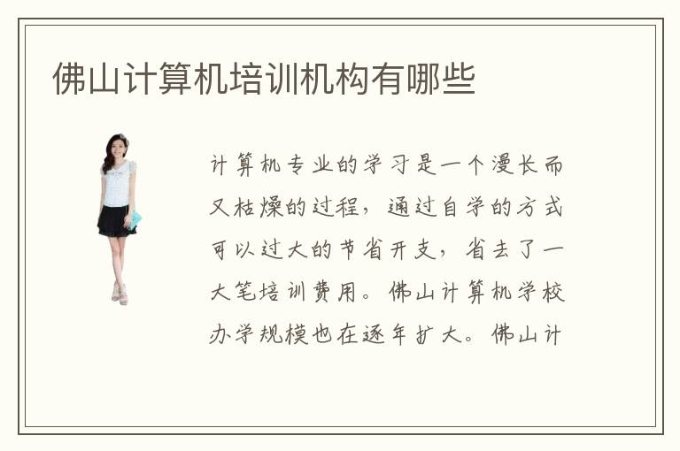 计算机专业的学习是一个漫长而又枯燥的过程,通过自学的方式可以过大的节省开支,省去了一大笔培训费用。佛山计算机学校办学规模也在逐年扩大。佛山计算机学校有得天独厚的地理位置,学校处于交通便利的地方,增加了学生的生源的同时,还能够方便师生来学校探讨,这是一个比较好的优势,更好的是,佛山计算机培训计算机培训班有优质的教学资源,比如,资历丰富的培训老师和先进前卫的教学理念等等,都是吸引学生的特色之处。佛山计算机培训学校从开初创立到此刻曾经收成了好几批优异的计算机人材,为国度的计算机科技实力的成长尽本身的菲薄之力。计算机专业作为当下热门专业,很多人都选择计算机专业而且在未来处置相干职业。计算机专业的学习一般有两种方式,一种是通过阅读研究计算机相关专业的书籍资料,或者是去网络上搜寻计算机相关专业的学习教程来自学的方式。