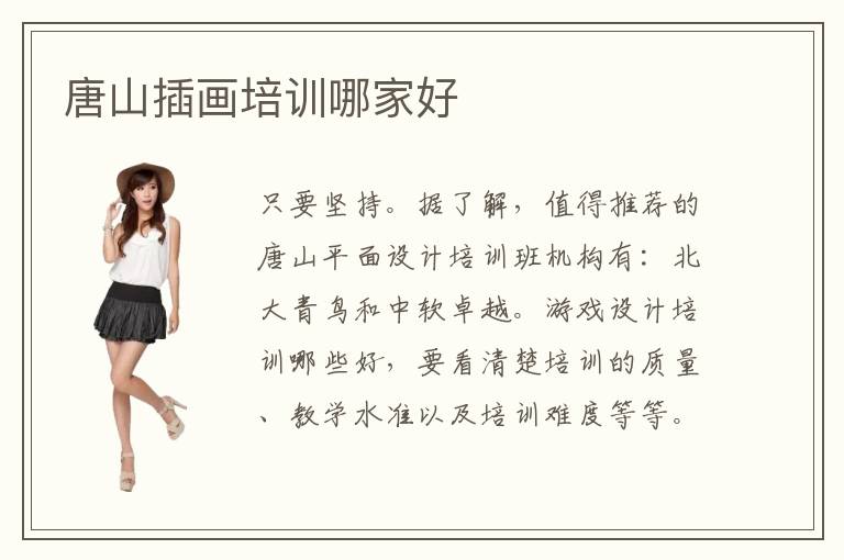 只要坚持。据了解,值得推荐的唐山平面设计培训班机构有:北大青鸟和中软卓越。游戏设计培训哪些好,要看清楚培训的质量、教学水准以及培训难度等等。据了解这些ui培训班学费在10000元左右,培训周期有长有短,培训班排课和时间安排都是根据专业课程的需要和学员们的实际情况而决定的,比较有人性化。有些同学对设计专业的内容很陌生,没有太系统的方案,导致进度特别慢,也达不到预期的目标。大家如果想要保障ui课程培训效率,那么可以选择唐山UI设计培训速成班,老师有比较明确的学习目标和方向,让学生可以得到更多应用,了解整体行业的未来发展趋势。装修设计最近几年上的火爆,主要是工资待遇不错,学习过程比较轻松,许多学生都能掌握重要的设计技巧和应用。