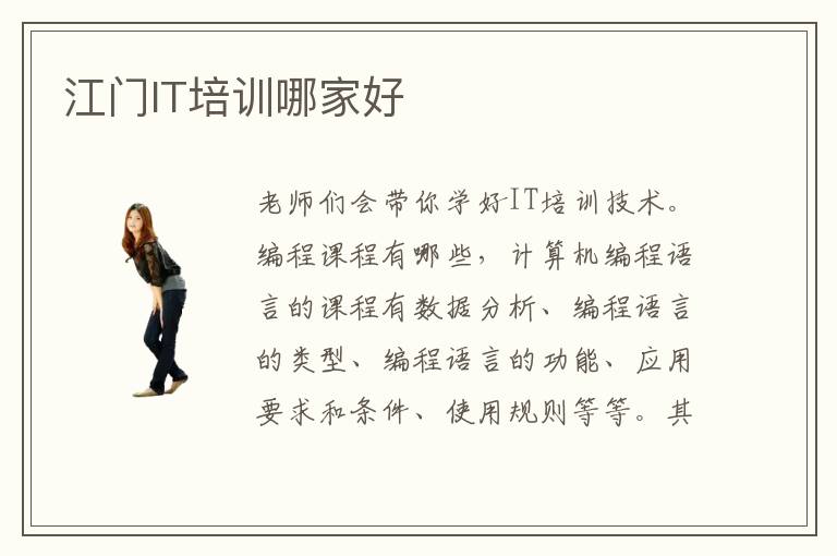 老师们会带你学好IT培训技术。编程课程有哪些,计算机编程语言的课程有数据分析、编程语言的类型、编程语言的功能、应用要求和条件、使用规则等等。其实计算机行业发展很快,要求逐渐提高,对技术人员的压力也会逐渐升高。一部分学生感觉软件开发的技术越来越多,难度越高,往往会面临很多困惑,不得不选择专业培训班的帮助。江门电竞培训学校会营造很好的氛围,帮助同学挖掘不足之处,让同学可以享受电竞专业的学习乐趣。江门it培训学校里面的教师团队都是专业的。IT培训机构优点主要是可以挖掘出学生的潜力和特色,如果学生在某些专业方面比较感兴趣,老师也可以及时发现,然后进行有方向性的培养。而且从事这一些工作岗位的人才越来越多,未来的赛道也会越来越紧,大家要明确个人的发展方向,努力提升专业实力。
