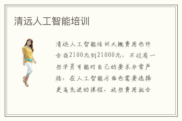 清远人工智能培训大概费用也许会花2100元到21000元,不过有一些学员可能对自己的要求非常严格,在人工智能方面也需要选择更高先进的课程,这些费用就会有一点点上升。人工智能就业难吗,人工智能辅导课程很重要,假如没有掌握好专业的课程和培训方法,就业的过程中会遇到非常多难题。清远人工智能培训学费可能在准备3000元到3万元左右,因为报名的课程内容不同。ai辅导可靠吗,一些口碑不错、经过多年发展也能保持非常高知名度的辅导班,应该是得大家考虑。学习专业课程时,同学要有明确的要求,跟上自己的节奏,然后结合行业动态和发展方向,一步步进行训练。当然并不是每个人都有非常强的天赋,因此刚刚起步的时候,往往是一头雾水,这时可以通过ai远程培训的课程,让自己更快了解工作的要求,从而取得更多优势。