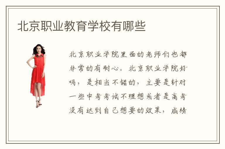 北京职业学院里面的老师们也都非常的有耐心。北京职业学院好吗,是相当不错的,主要是针对一些中考考试不理想或者是高考没有达到自己想要的效果,成绩不能够上大学,选择这样的学校也可以提升自己的专业技能。那末,你感觉北京职业学校是否是一所靠谱的学校呢。北京职业学院,当然也是一个不错的选择。职业学院确实不是大多数人的首选,不过有些学生平时懒于学习,中考或者是高考的成绩没有达到自己想要的状态,这个时候职业学院也许是合适的选择。北京职业学院值得吗是很多人关注的话题,其实大家也可以多了解北京职业学院教育成果,因为现在社会上越来越需要实用型的综合的人才,而职业学院往往就是更加注重于实际的操作,学生可以充分了解不同专业知识的运用,把握住时代的所需。