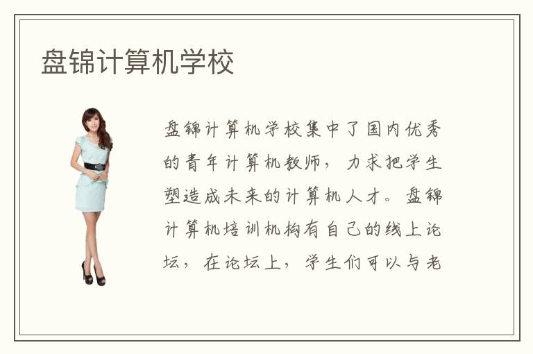 盘锦计算机学校集中了国内优秀的青年计算机教师,力求把学生塑造成未来的计算机人才。盘锦计算机培训机构有自己的线上论坛,在论坛上,学生们可以与老师讨论计算机方面的任何问题,并且提出的疑问也能够在第一时间得到回复,学生的学习效率得到很好地提高。盘锦电脑学校学习计算机周期是多久呢?盘锦地区计算机培训班多少钱?盘锦学好计算机要多长时间?