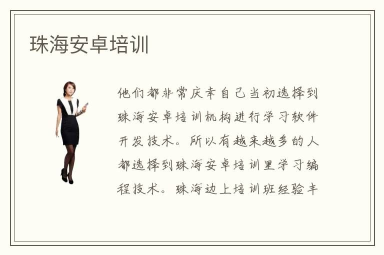 他们都非常庆幸自己当初选择到珠海安卓培训机构进行学习软件开发技术。所以有越来越多的人都选择到珠海安卓培训里学习编程技术。珠海边上培训班经验丰富。安卓程序设计工程师有很好的教学作用,可以安排很多项目,同学的视野会变得更加开阔。所以想快速掌握软件开发技术就得去到最最专业的学校进行学习。推得推荐的珠海安卓开发培训机构有:珠海北大青鸟,达内教育,甲骨文,达内教育和中软卓越这几家,均有开设安卓开发培训班,并且在师资力量上都是有过实际项目经验的老师,这样又处于学员了解行业的发展,清楚工作中的常见问题,让学习内容更容易与工作对接上。所以,有一大部分人选择去珠海安卓培训进行编程的培训,因为他们觉得珠海编程培训比较不错,而且距离比较近。