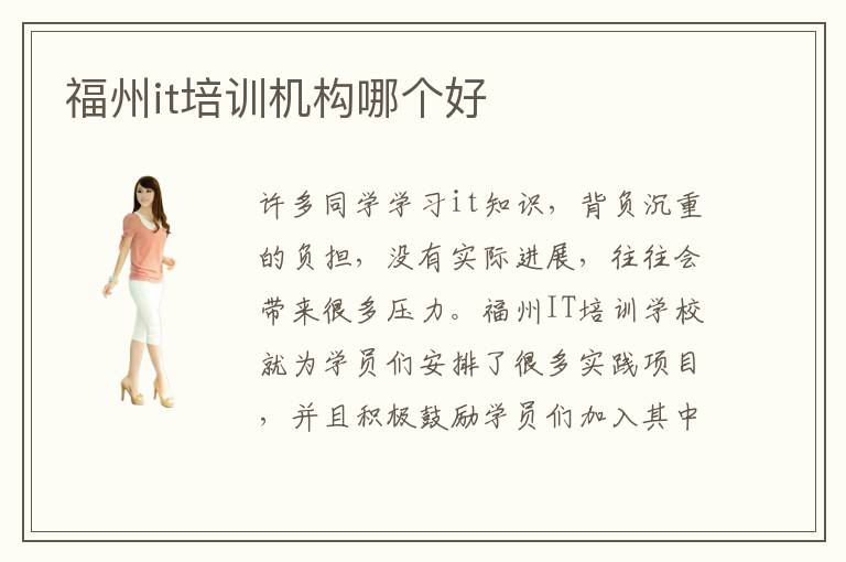 许多同学学习it知识,背负沉重的负担,没有实际进展,往往会带来很多压力。福州IT培训学校就为学员们安排了很多实践项目,并且积极鼓励学员们加入其中。而且老师着重于it实践课程的讲解,很多同学不懂如何操作,老师会讲到大家理解为止。福州地域计算机培训有哪些项眼。福州开始建立了各类百般大巨细小的分歧品牌专业计算机培训学校,这些福州IT培训学校的建立给了泛博学子一些计算机专业课程的学习平台,那末福州IT培训学校究竟哪家比较好呢。福州IT培训机构哪家的教学质量好呢。IT培训机构能不能赢得企业的项目合作权,为广大学生赢得实践机会。福州北大青鸟专业IT培训学校是北大青鸟专业计算机培训学校在福州开设的分校区,成立至今多年也已经先后为这个地区的信息技术行业培养了很多优秀的IT精英人才,福州北大青鸟IT培训学校对于想要学习IT专业技术的同学还是很推荐的。