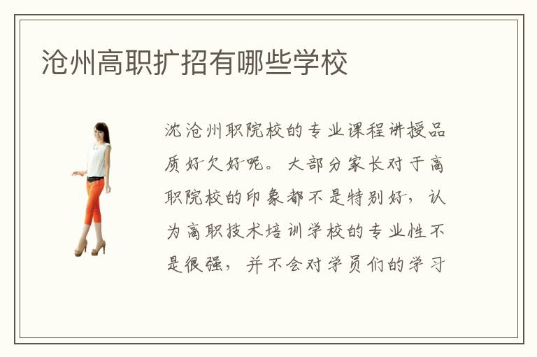沈沧州职院校的专业课程讲授品质好欠好呢。大部分家长对于高职院校的印象都不是特别好,认为高职技术培训学校的专业性不是很强,并不会对学员们的学习效果有好的帮助。襄阳襄阳本来的经济基础就有很大的成长空间,绝对应地,国度也对本地的科技成长抱有比较大的希冀。也许还有很多人会觉得高职院校是非常劣质的,没有优势,往往缺乏经验,教学模式是传统的照本宣科,大多数都不太好。如果同学们要在沧州选择高职院校,笔者这里建议大家一点要选择那些沧州高职院校热门专业,因为热门的专业一般报名人数多,学校也会相应的投入更多的师资力量,教学质量相对会有更多的保障。沧州高职院校办学以来,都是非常有优势的,比如还有多个专业,包括计算机行业,医疗行业,机械电子行业等等,比较注重实际专业和知识的培养,而且能够针对社会上的高薪企业进行指导,有助于让学生能够和企业对接,这样的话就可以在短时间内掌握企业真正所需要的能力。